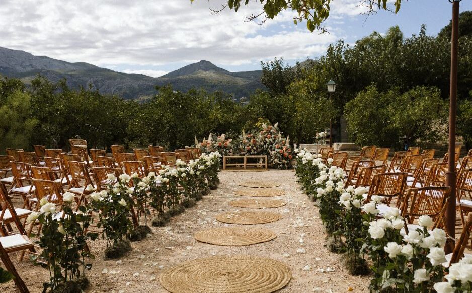 The Casa Benigalip complex is divided into 7 functional spaces and 2 service spaces. The main one, around which the entire environment is articulated, is Casa Benigalip, around which are located the two large gardens: the Garden of the Olives and the Main Garden. Adjacent to the latter is the multifunctional space called Albero y Piedra, which faces the large Exterior Pergola. Other spaces available are the chillout, the interior patio, the parking areas, the farm, and the crop fields.