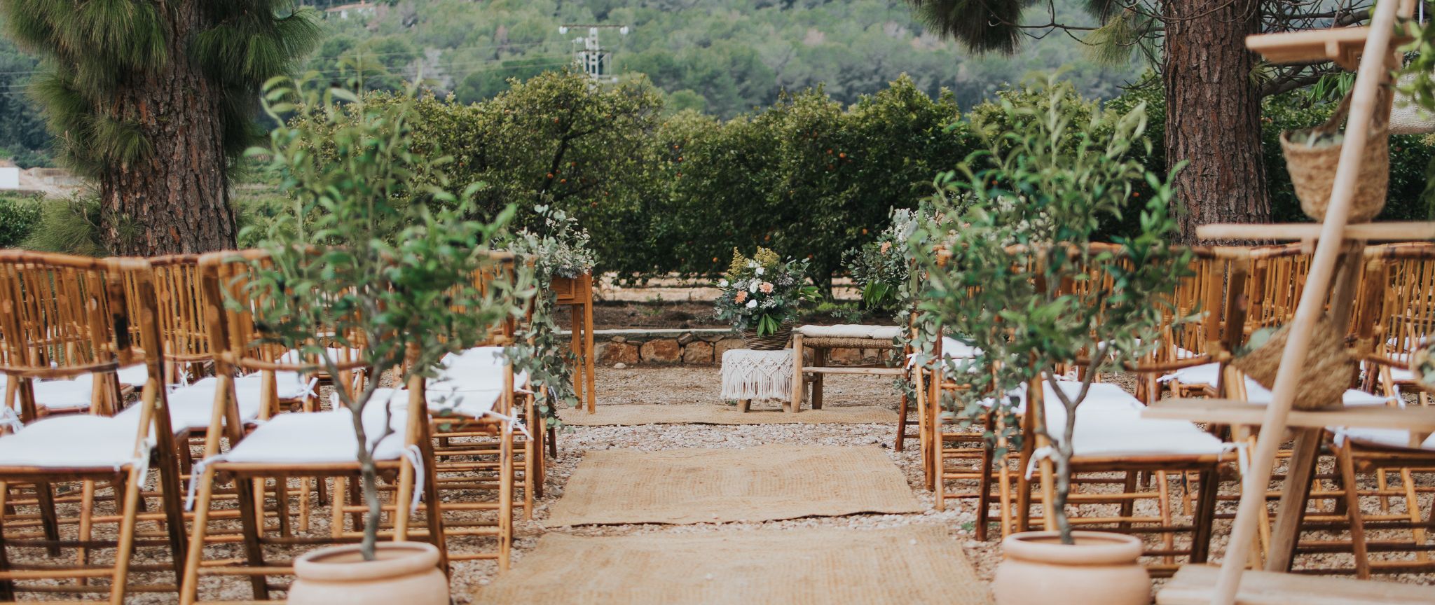 Una romántica ceremonia rodeada de árboles y con vistas a la montaña. Así empezará tu historia en La Prensa de la Valldigna. Los invitados se enamorarán al instante del encanto de sus exteriores, pero todavía les faltan muchas sorpresas por descubrir. Esta finca esconde diferentes rincones donde poder dar forma a cada momento de la celebración. Aprovecha el agradable clima de la zona y elige sus diferentes patios para cada parte del evento. Frente a la fachada se encuentra el Patio del Olivo Centenario.
